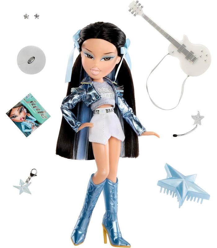 Incluye 1 muñeca Bratz Jade con outfit de estrella pop y accesorios musicales.