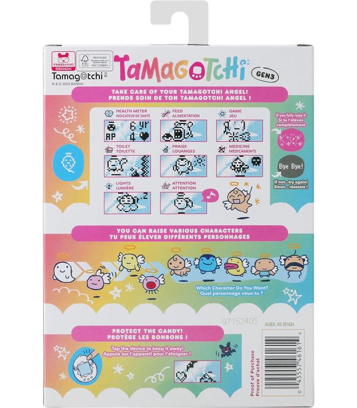 Tamagotchi Angel, la mascota virtual con temática ángel; descubre la tercera generación de Tamagotchi con nuevos personajes de la familia Angelgotchi para hacer crecer y nuevos divertidos juegos