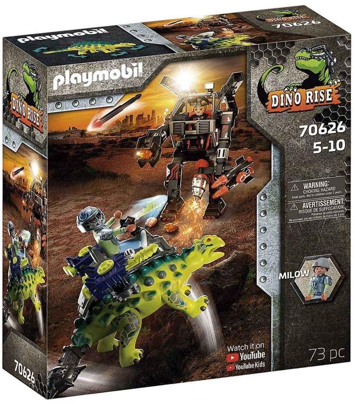 Dino-Power: PLAYMOBIL Saichania: Defiende al cazador con 1 Dino y Milow del Equipo Dino Rise, así como el robot y la figura de la Comet Corporation