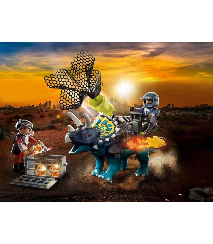 Contenido: 1x PLAYMOBIL Dino Rise Triceraptos: Batalla por las piedras legendarias, Set de figuras de juego de 40 piezas con numeración del embalaje interior así como instrucciones de montaje: 1 dino, 2 mini-robots, 2 figuras, 35 accesorios, Material: plástico, LxDxH: Triceratops con armadura: aprox. 22x12,5x11,5 cm, Peso: 244x g, 70627
