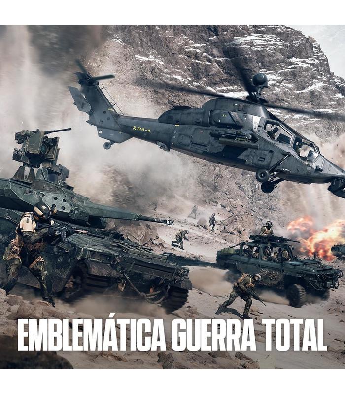 La experiencia bélica definitiva. Lucha en intensos combates de infantería, atraviesa los cielos en combate aéreo, destruye tu entorno y consigue una ventaja estratégica, y toma el control de todas tus decisiones y movimientos con el sistema de combate cinestésico. En una guerra de tanques, cazas y gigantescos arsenales de combate, el arma más mortífera es tu patrulla. Esto es Battlefield 6.