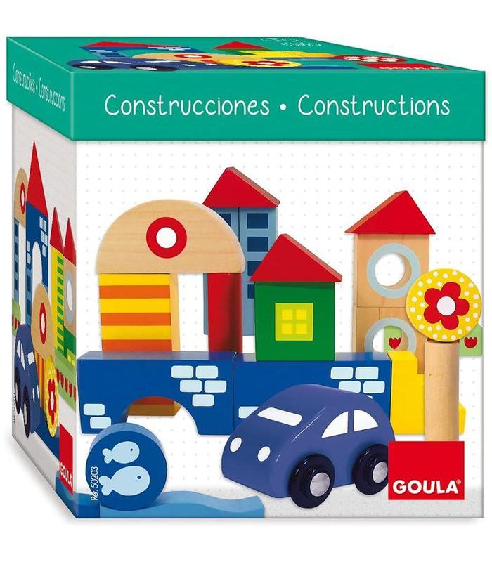 el juguete incluye 41 piezas de distintas formas como: rectángulo, cilindro, triangulo,círculo.; para que los más pequeños puedan idear muchisimas opciones distintas