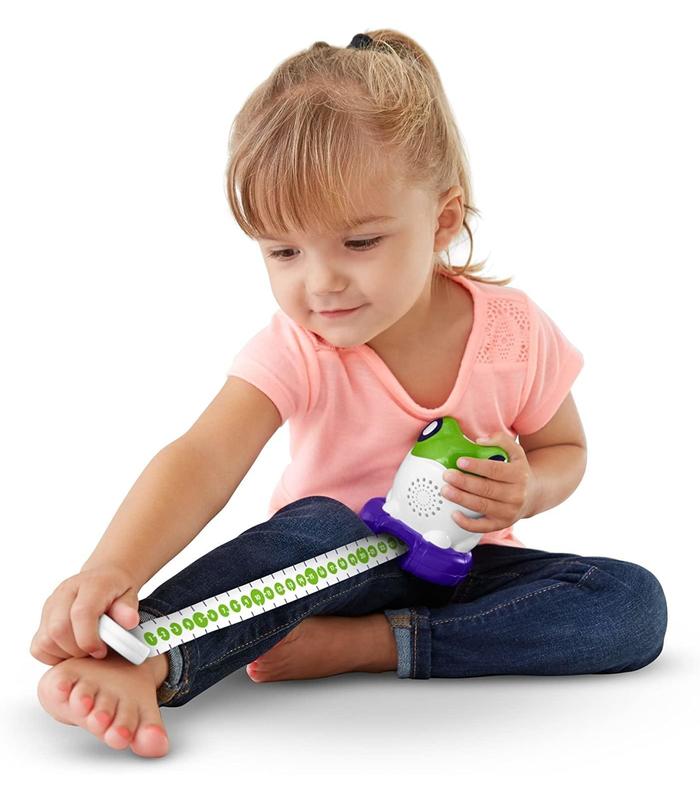 La ranita cobra vida con divertidos sonidos que ayudan a los niños de preescolar a aprender las unidades de medida haciendo comparaciones mientras descubren el mundo que los rodea
