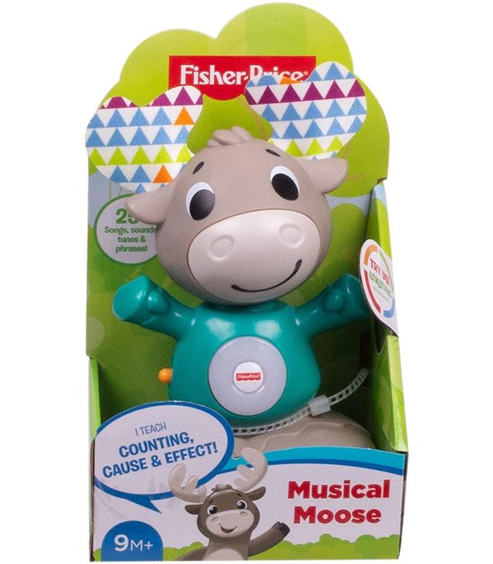El niño podrá explorar la divertida cabeza balanceante y sentir la suavidad del tejido de las astas del alce de fisher-price