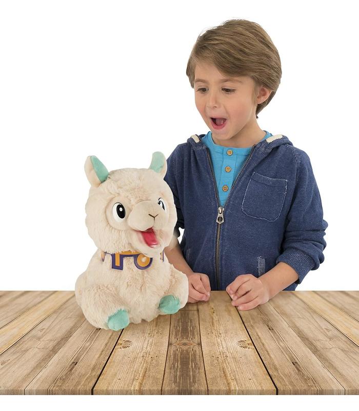 Esta adorable y divertida llama siempre tiene hambre ¡Es muy graciosa! Cuando mastica, hace ruidos, eructa y se ríe constantemente Cuando le presionas la patita, SPITZY ¡te escupirá! Peluche interactivo, Edad recomendada 18m+, Funciona con pilas (no incluidas)