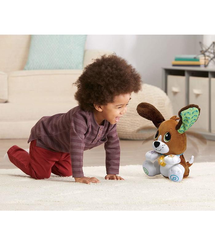 Una suave perrita, interactiva para acompañar en el aprendizaje del lenguaje, emociones y habilidades motoras de una manera lúdica.