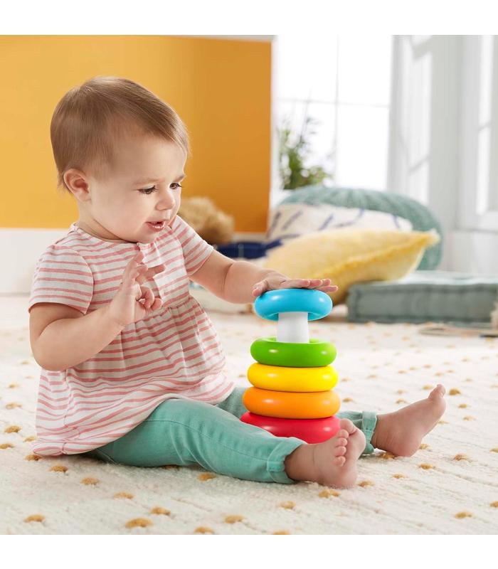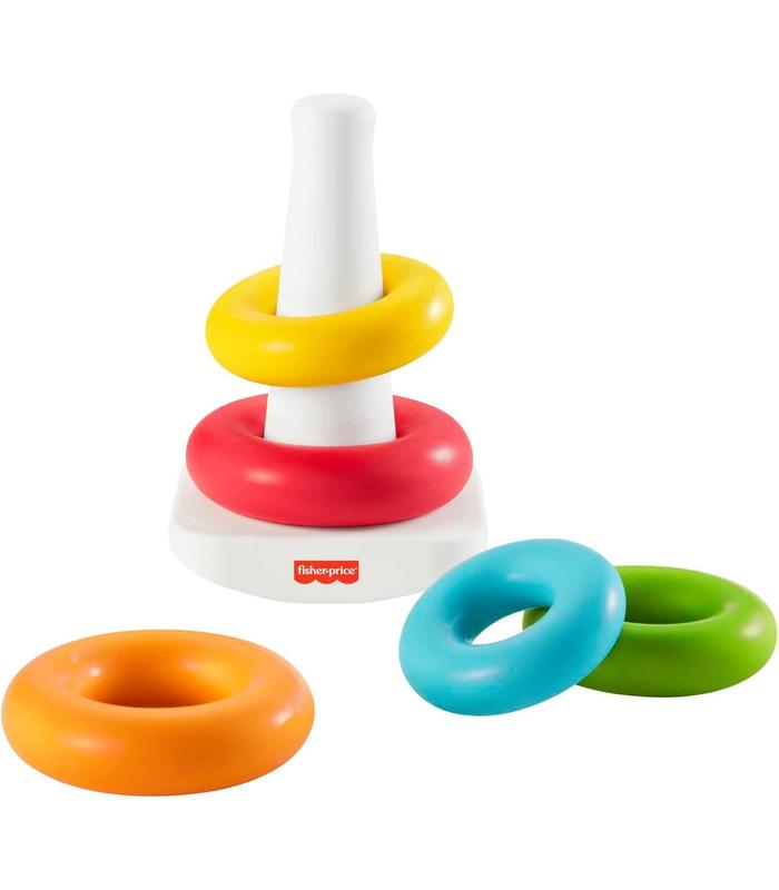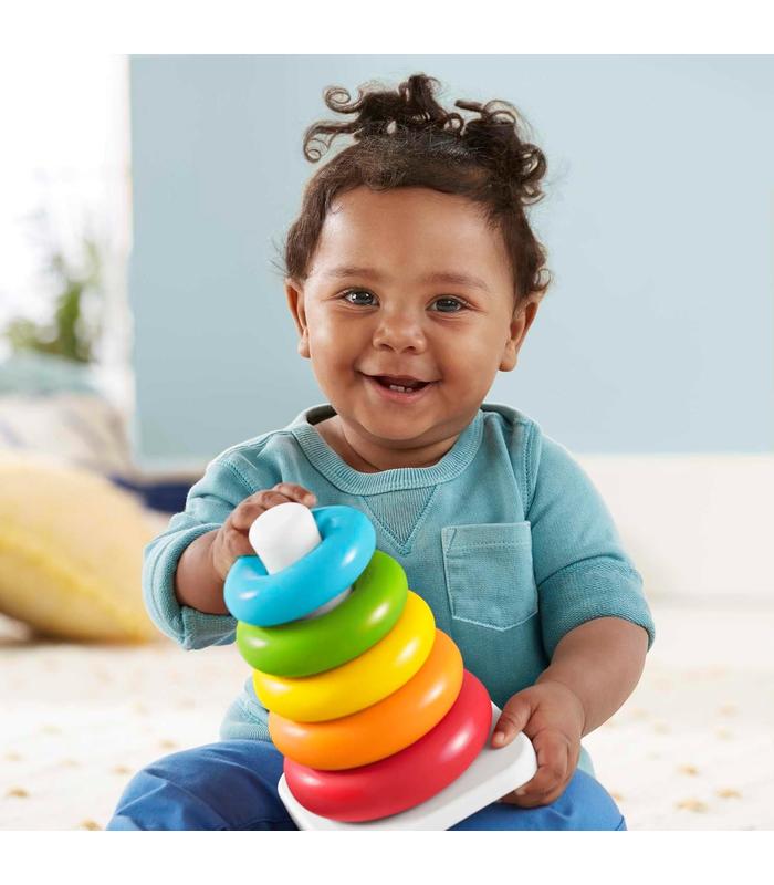 Por fin... El aro para coronarlos a todos. El juguete Pirámide balanceante de Fisher-Price, fabricado con materiales vegetales*, ofrece a los bebés la clásica diversión de apilar aros. Cuenta con una base que se balancea y 5 aros de colores que las manitas de los más pequeños podrán agarrar y apilar. Al apilar los aros, el bebé desarrolla la coordinación óculo-manual y comienza a entender el concepto de tamaño mientras ordena y apila los aros del más grande al más pequeño. (* Juguete fabricado con un mínimo de 90% de etanol extraído de la caña de azúcar).