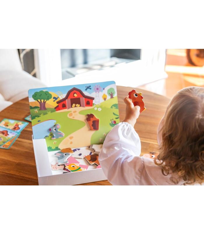 Este libro magnético con una caja permite a los niños crear escenas creativas y adorables centradas en los animales de la granja; el set está diseñado para ofrecer una experiencia de juego práctica, educativa e imaginativa que los niños pueden disfrutar tanto en casa como en movimiento