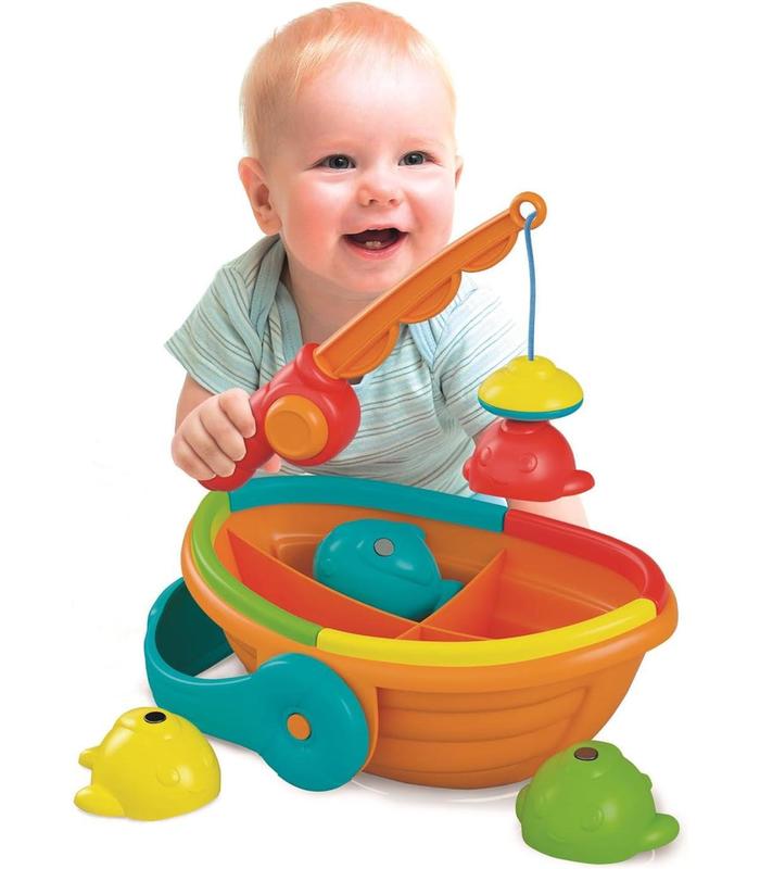 Cuatro peces felices esperando ser capturados y colocados en el barco según su color; un clásico juego reinterpretado para hacerlo simple, infantil y divertido para los más pequeños, permitiéndoles desarrollar la coordinación y agudizar el pensamiento lógico