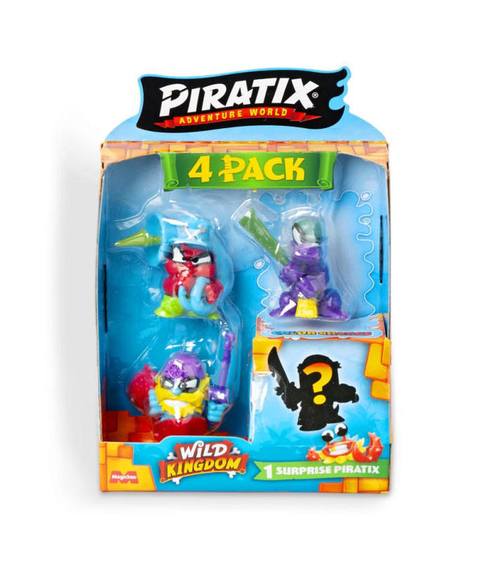 Completa tu colección más rápido con este pack. Encuentra 4 Piratix de la serie Wild Kingdom, ¡uno de ellos de la tripulación Camouflash Crew que cambia de color con el agua caliente y uno sorpresa! Hay 6 packs diferentes para coleccionar.