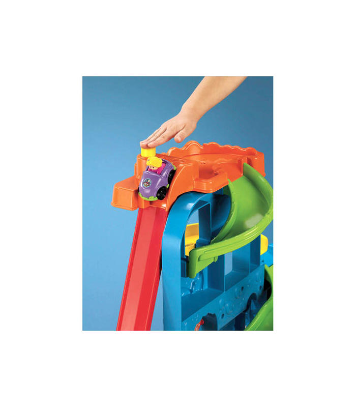 Este conjunto de juego, con el que se puede jugar desde ambos lados, mide más de 60 cm de alto e incluye una rampa llena de giros, ¡y un looping de 360 grados que desafía la gravedad! Al bajar por la rampa, los vehículos activan la pieza giratoria ¡y al llegar al final se activan luces y divertidos sonidos! Al pulsar el botón de la parte superior del parque de atracciones, ¡el vehículo baja a toda la velocidad por la inclinada rampa que acaba en un looping de 360 grados! Para más diversión, ¡se puede levantar la rampa del final del looping y el vehículo realizará un espectacular salto! Incluye varios accesorios: entre ellos 4 banderas que se pueden colocar en distintas partes, así como 2 coches ambientados en un parque de atracciones, con un conocido personaje de Little People.