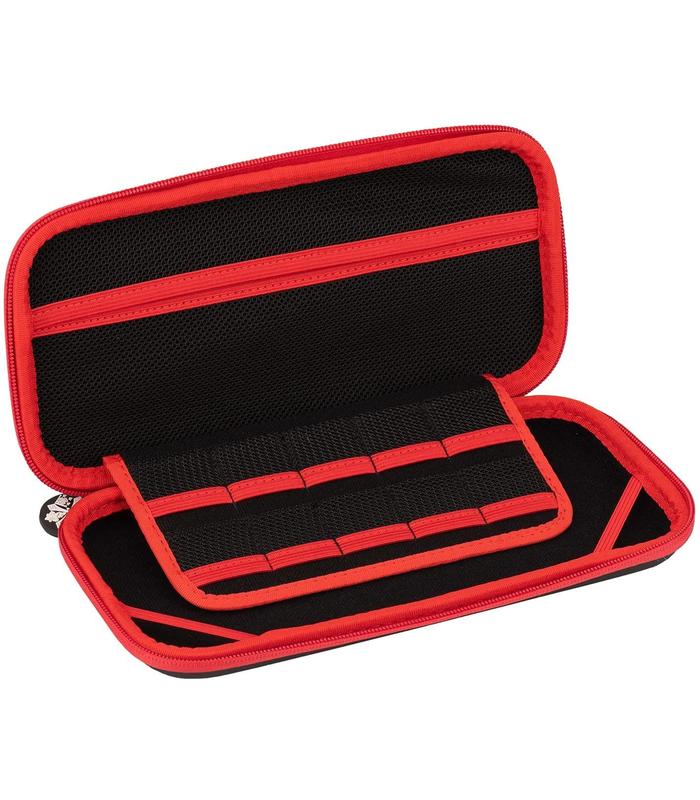 Además cuenta con un bolsillo interior para accesorios y espacio para guardar hasta 10 juegos.