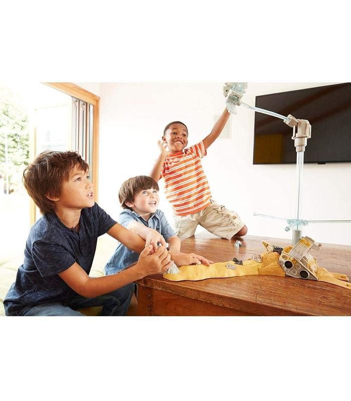 ¡Ayuda a Han Solo y Chewbacca a escapar de las Tie Fighter del planeta desértico Jakku! Consigue este increíble playset motorizado y disfruta tratando de escapar del peligroso desierto del planeta Jakku. Tendrás que esquivar y encontrar el momento perfecto par atacar a las Tie Fighter y derribarlas. ¿Serás capaz de acabar con el ataque del imperio y ponerte a salvo? Pon a prueba el poder del Halcón Milenario y conviértete en el mejor aliado de la fuerza. Medidas aproximadas de la nave: 9 cm de largo y 7 cm de ancho. - Funciona con 3 pilas AA (No incluidas) - Puede encontrar las pilas pilas y baterías