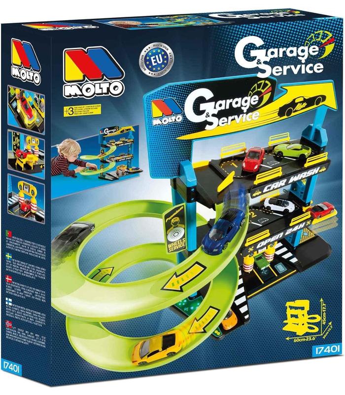MOLTO Parking Infantil?!Gestiona tu propio parking con rampas, lavadero, ascensor y estación de servicio!. Este parking de juguete tiene 3 plantas de altura con estacionamiento para multitud de coches. Con el parking infantil de Molto tendrás horas y horas de sana diversión alejada de las pantallas. (Este artículo viene sin coches incluidos)