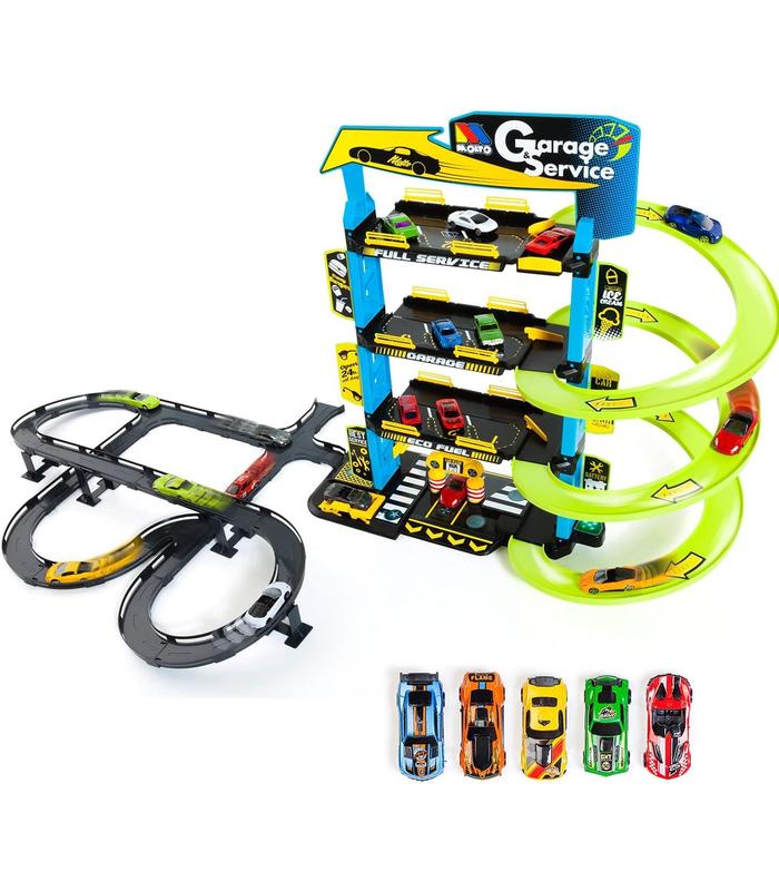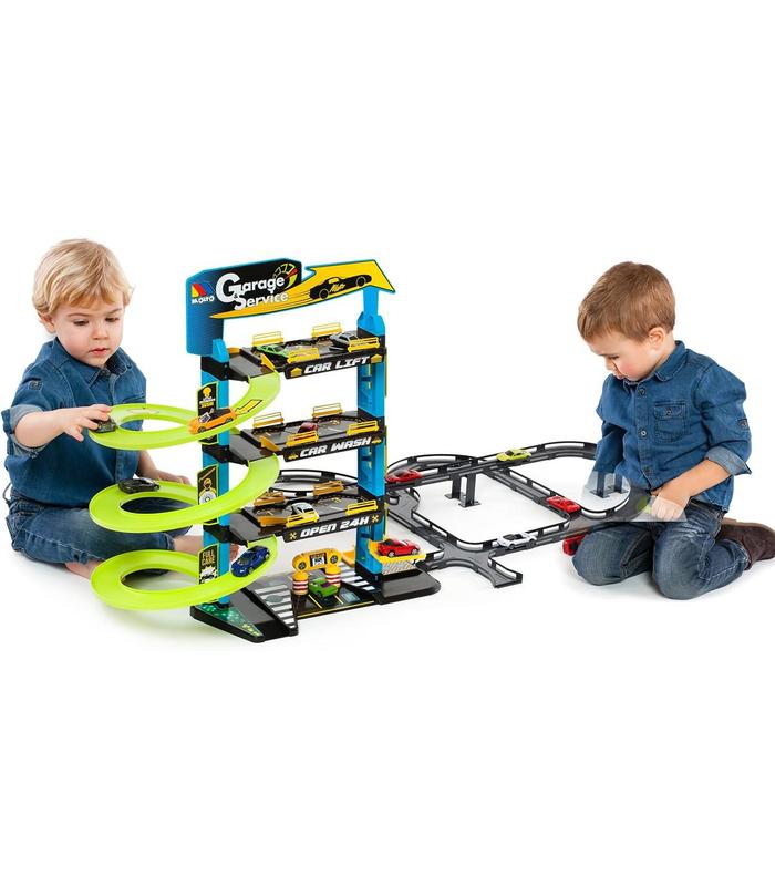 MOLTO Parking Infantil?!Gestiona tu propio parking con rampas, lavadero, ascensor, estación de servicio y zona de engrase!. Este parking de juguete tiene 4 plantas de altura con estacionamiento para multitud de coches. Con el parking infantil de Molto tendrás horas y horas de sana diversión alejada de las pantallas. Incluye pista exterior y 5 coches de juguete para empezar a jugar desde el minuto uno.
