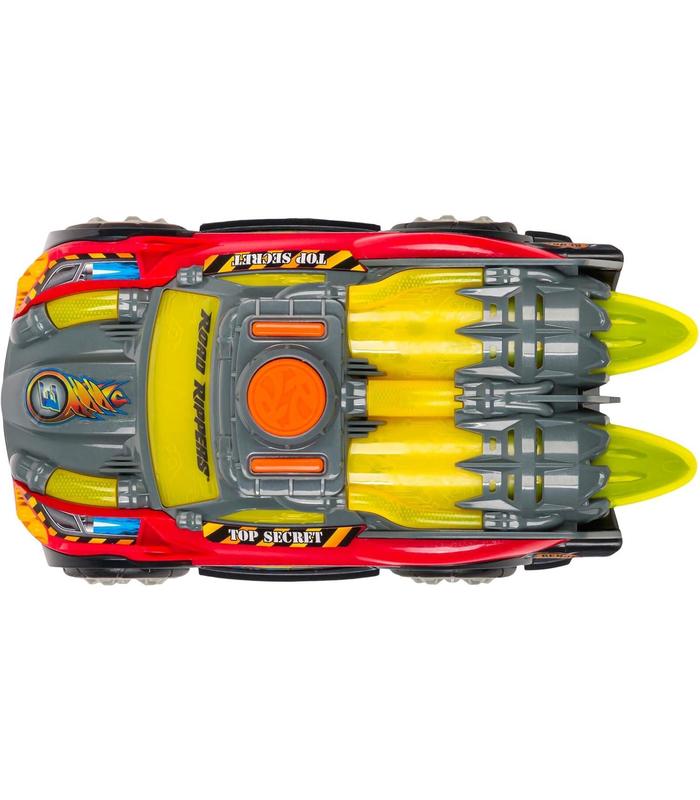 "Pulsa el botón de lanzamiento para hacer girar las turbinas y ver cómo se lanzan mientras el vehículo despega Luces, sonidos, música y acción y efectos de conducción motorizados Road Rippers ingeniería y construcción de calidad, diseñada para resistir la prueba del tiempo y los rigores del juego"