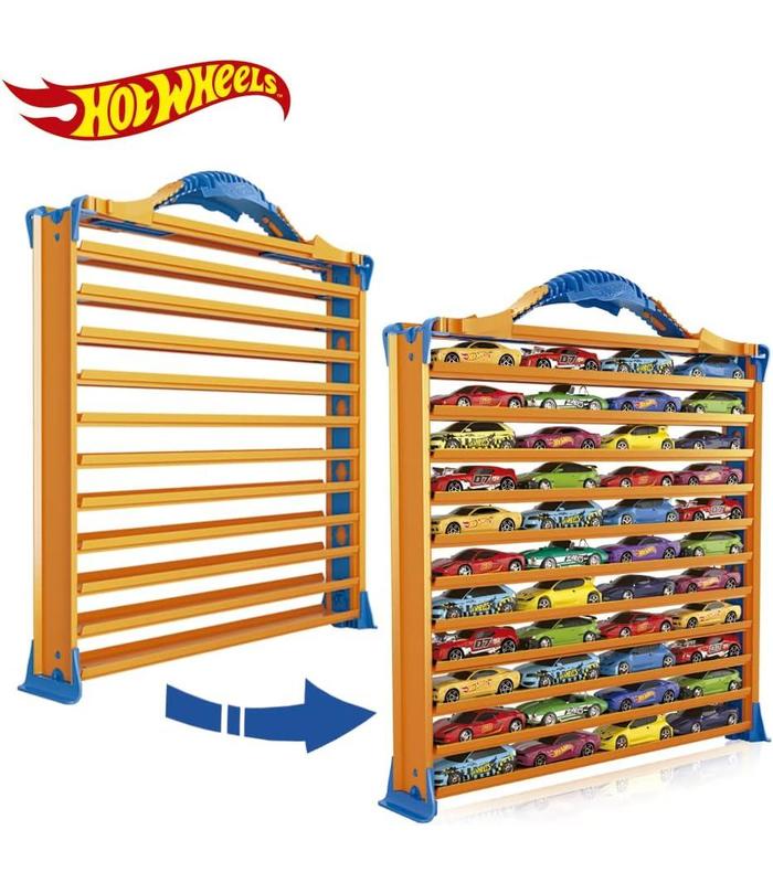 Tiene capacidad para guardar 44 coches. El asa te permite transportarlos fácilmente. Buena sujeción que impide que se caigan.