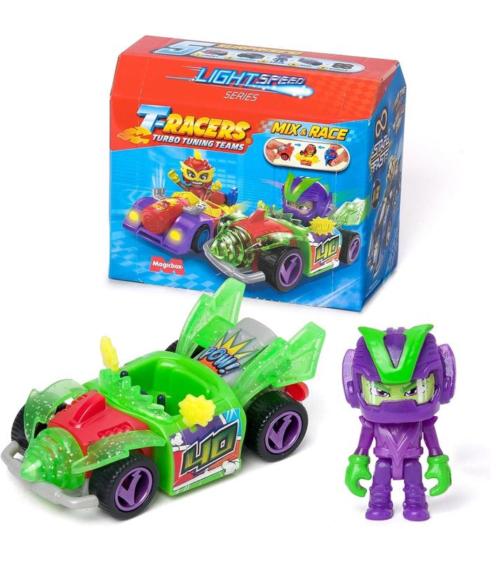 DESCUBRE LA SERIE LIGHT SPEED DE T-RACERS – ¡Los T-Racers vuelven a velocidad supersónica con la nueva serie Light Speed! Descubre 8 nuevos pilotos para coleccionar, nuevas piezas con poderes… ¡e infinitas combinaciones! ¿Estás listo para ser el piloto más rápido de toda la galaxia?