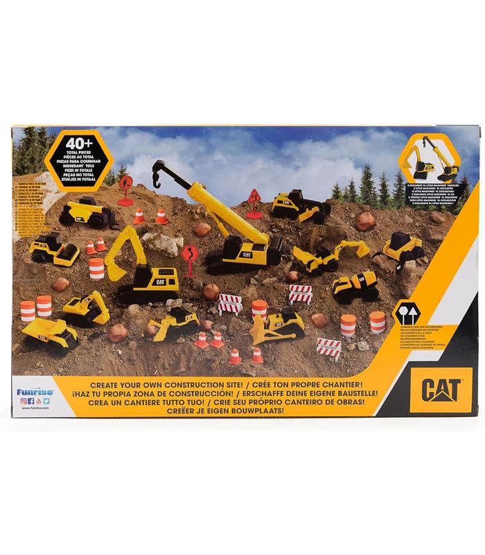Cat - Little Machines - Mega Set De 41 . VARIEDAD DE VEHÍCULOS: ¡Experimenta la emoción de la construcción con 8 mini vehículos de 8 cm, una excavadora de 13 cm y una grúa de 19 cm!