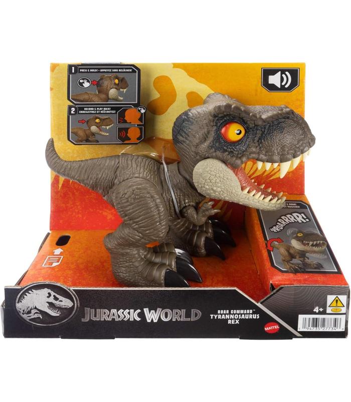 ¡Habla con un tiranosaurio rex! Este juguete Tiranosaurio rex Roar Command, inspirado en Jurassic World, permite a cualquiera hablar como un dinosaurio ¡y jugar con su acción de ataque y rugido!