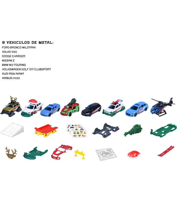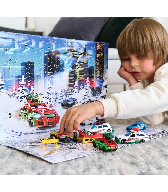 Calendario de Adviento Majorette con 24 sorpresas para descubrir durante la temporada navideña; incluye 8 coches exclusivos de metal fundido a escala 7,5 cm con diseño invernal y ruedas giratorias para jugar o coleccionar