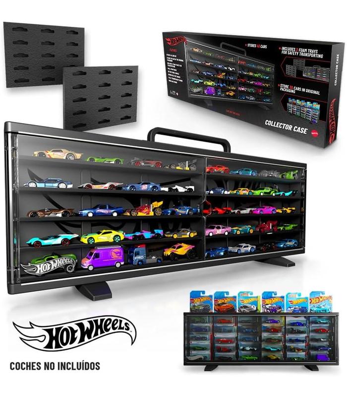 El maletin coleccionista de Hot Wheels se puede transportar o se puede usar como vitrina para almacenar hasta 40 coches