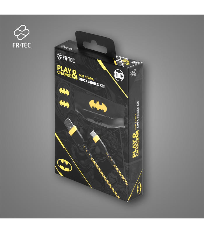 El Carga y Juega de Batman™ para Xbox Series X/S™ es un especial pack compuesto por grips con el logo de Batman™, una batería de 1000mAh recargable customizada y un cable USB-C de 3m con los colores de Batman™ combinados en el cable con cobertura de nylon y los acabados del conector. ¡Carga el mando sin parar de jugar!